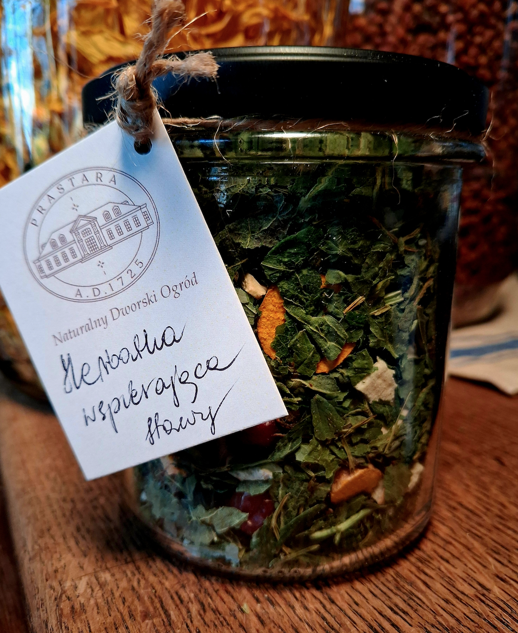Kompozycje ziół mogą różnić się składem w zależności od zbioru ziół, owoców i kwiatów w sezonie, w Rezydencji Prastarej